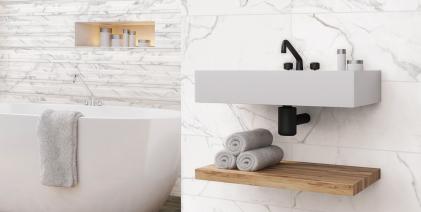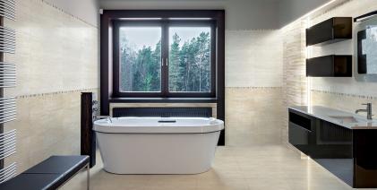 Již tradičně je koupelna předmětem realizace představ svých majitelů: obklady, dlažby, listely, dekory a to včetně podlahových, to vše umožňuje vytvořit přesně takové prostředí, do kterého ráno vstáváme a přes den se mnohokrát vracíme.